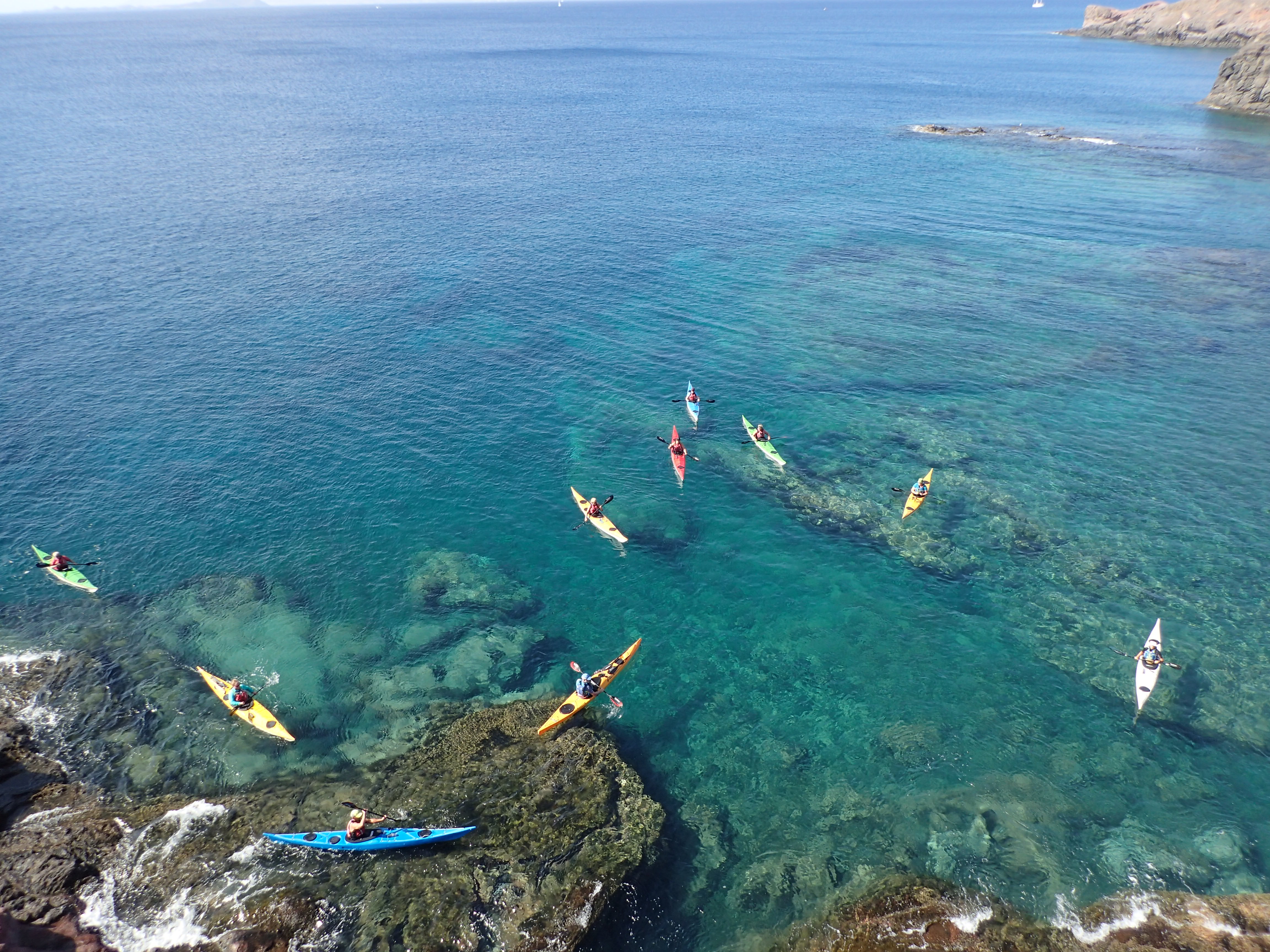 Around the Papagayo cape and further up the coastline, we can pay a visit to the Los Ajaches cliffs and view a Canarian Egyptian vulture nest in the spring, watch the peregrine and Barbary falcons chasing pigeons (which often ditch into the sea to escape!), paddle past big groups of little egrets and see a large heron colony in the cliffs during the winter. And then there's the rocky volcanic coastline heading into Puerto Del Carmen, with its basalt columns and lava tubes, and the sandy beaches of Arrecife where you can paddle under the medieval bridge, visit the fort and look for stingrays in the harbour!