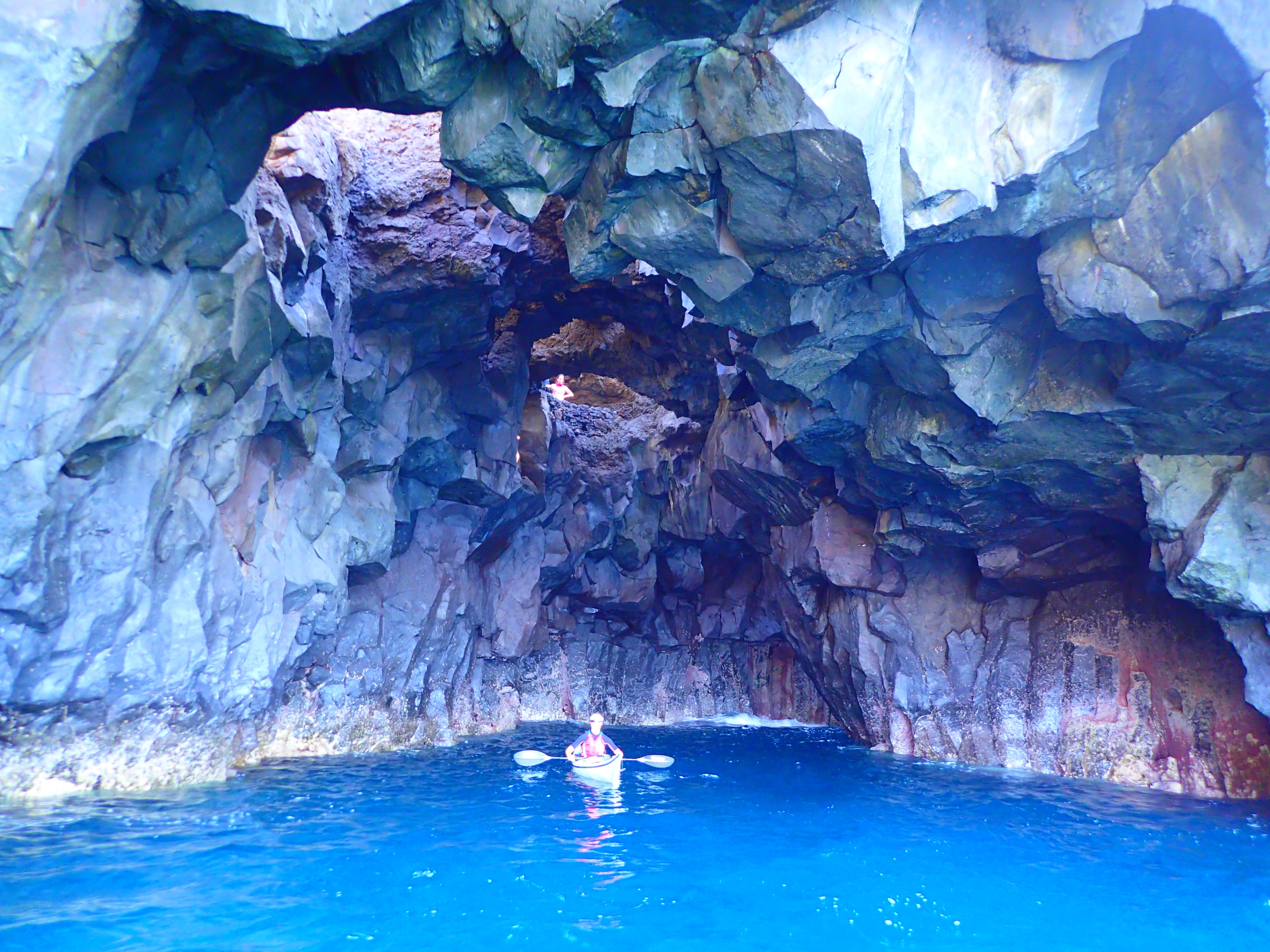 The west coast is very exposed to the ocean swells which roll in over the winter, so we can only paddle this area when the swells are very small. Los Hervideros is a famous attraction where people come and watch the waves smashing into the rocks and where the water gets so churned up that it appears to 'boil', hence the name, which means 'the boiling places'. But even with this fearsome reputation, knowledge of the area and of the conditions needed to paddle here mean that we can run trips along this stunning coastline and even paddle inside the bright and beautiful Los Hervideros cave.